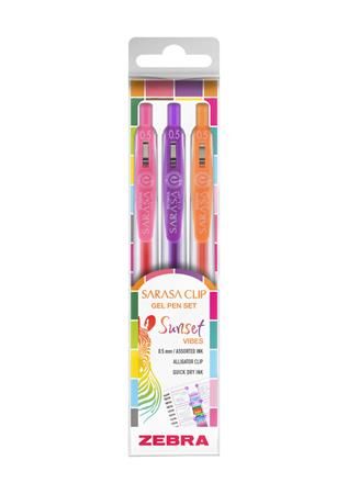 Sada gélových pier, 0,25 mm, s tlačidlom, ZEBRA „Sarasa Clip Sunset“, 3 rôzne farby