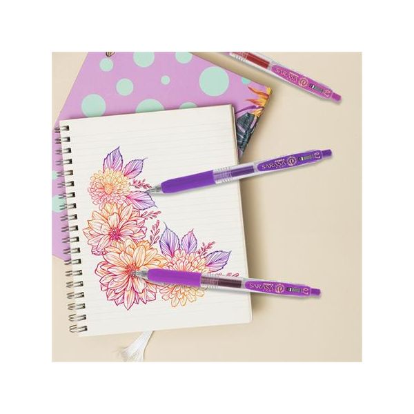 Gélové perá Sarasa Clip vynikajú svojím čistým dizajnom a praktickými funkciami, vďaka čomu sa odlišujú od ostatných písacích potrieb. Inovatívny, pružný klip umožňuje jednoduché pripnutie pera na vrecko alebo obal poznámkového bloku, takže ho máte vždy poruke. Zladenie farby tela a atramentu nie je len estetickou výhodou, ale aj praktickou pomôckou – okamžite vidíte, akou farbou budete písať. Rýchloschnúci atrament Sarasa Clip zaručuje písanie bez rozmazania a telo pera vyrobené zo 76 % z recyklovaných materiálov je dôkazom ekologického prístupu.
