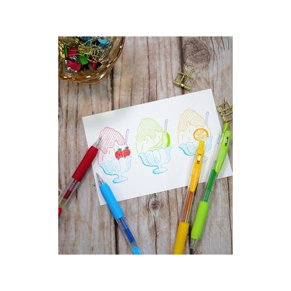 Gélové pero s veľkoobjemovou náplňou, ktorá vydrží písať 5x dlhšie (cca 2000 m). jemná stopa (hrot) 0,5 mm červený atrament jednoducho vidíte cez transparentné telo priehľadné, nasadzovacie viečko vrúbkovaný, gumený úchop proti kĺzaniu pera pri písaní náhradná náplň: jednorazová Balenie obsahuje 12 ks.Cena je za 1 kus.