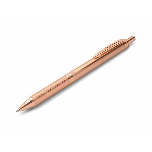 Gélové pero, 0,35 mm, stláčací mechanizmus, telo pera: rosegold, PENTEL "EnerGel BL-407" modrá