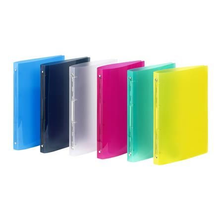Poradač krúžkový A4, vyhotovený z pružného polypropylénu/hrúbky 500µ, s 2-krúžkovým mechanizmom, s kapacitou do 70 listov. Hrúbka chrbta 2cm. Farba číra.