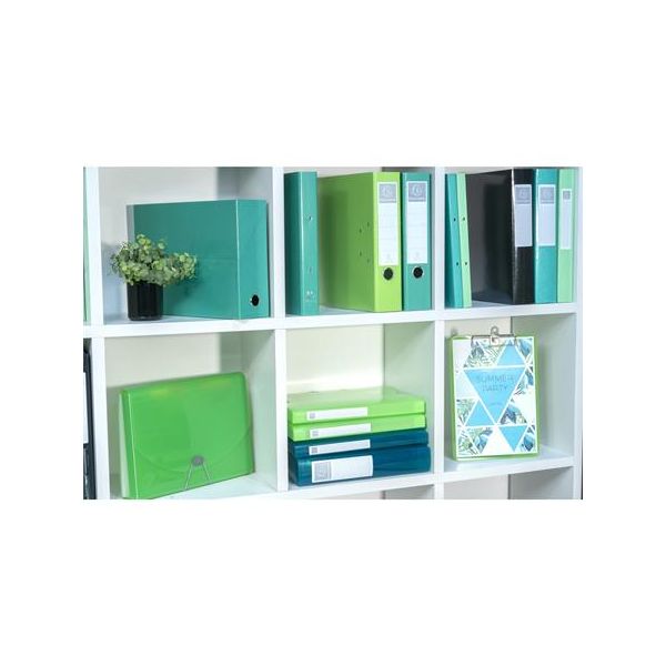 Poradač krúžkový A4, vyhotovený z pružného polypropylénu/hrúbky 500µ, s 2-krúžkovým mechanizmom, s kapacitou do 70 listov. Hrúbka chrbta 2cm. Farba zelená-transparentná