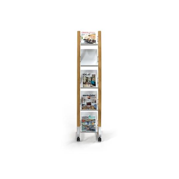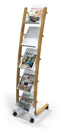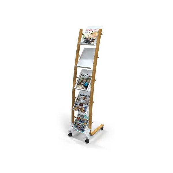 Držiak na katalógy, mobilný, 5 priehradiek, ALBA, drevo/biela
