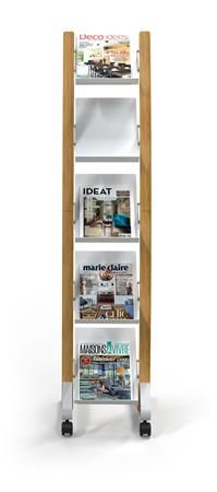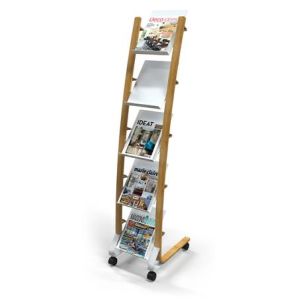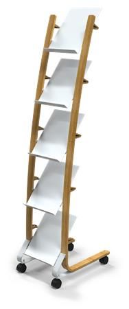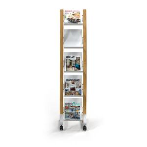 Elegantný dizajn s kombináciou materiálov dreva a ocele, ľahko viditeľný obsah. - kovový stojan s plastovými policami - pojazdný stojan so 4 kolieskami (2 uzamykateľné) - 5 priehradiek na dokumenty formátu A4 (24x32 cm) - hĺbka priehradky: 3 cm - jednoduchá montáž, upevňovacia sada je súčasťou balenia - kompaktné balenie s cieľom znížiť Emisie CO2 - šetrné k životnému prostrediu a 100% recyklovateľné