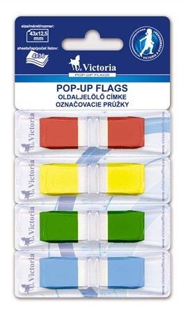 Záložky, plastové, 4x36 záložiek, 43x12,5 mm, VICTORIA OFFICE, mix farieb