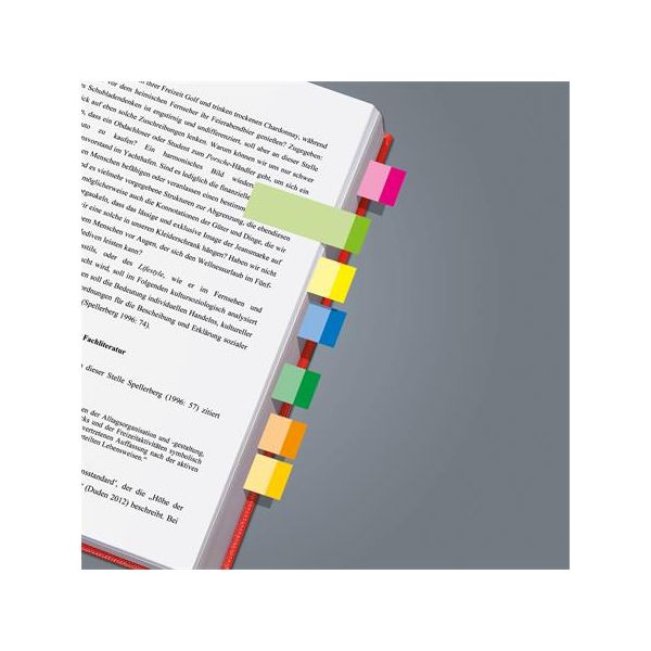 Samolepiace záložky na označovanie strán a rýchlu orientáciu v dokumente. Rozmery záložky 20× 50 mm. Neónové farby: ružová, zelená, oranžová a žltá po 50 lístkov. Gramáž 75 g/m2. Väčšie balenie 24 ks.