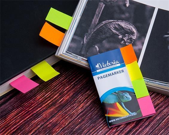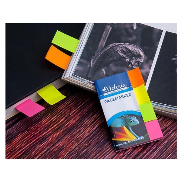Samolepiace záložky na označovanie strán a rýchlu orientáciu v dokumente. Rozmery záložky 20× 50 mm. Neónové farby: ružová, zelená, oranžová a žltá po 50 lístkov. Gramáž 75 g/m2. Väčšie balenie 24 ks.