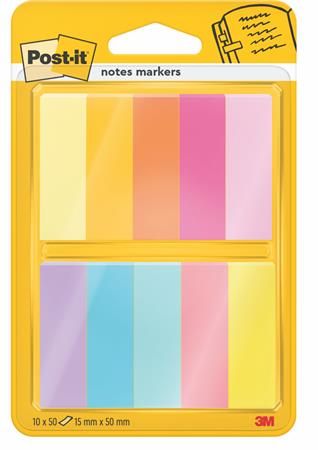 Záložka, papierová, 10x50 listov, 15x50 mm, 3M POSTIT, rôzne farby
