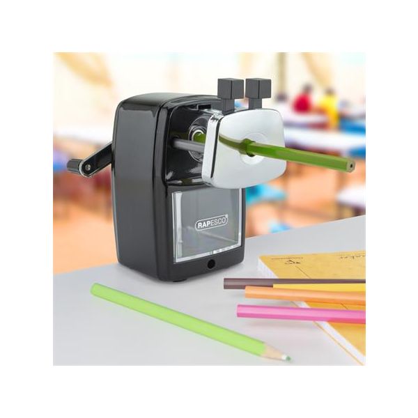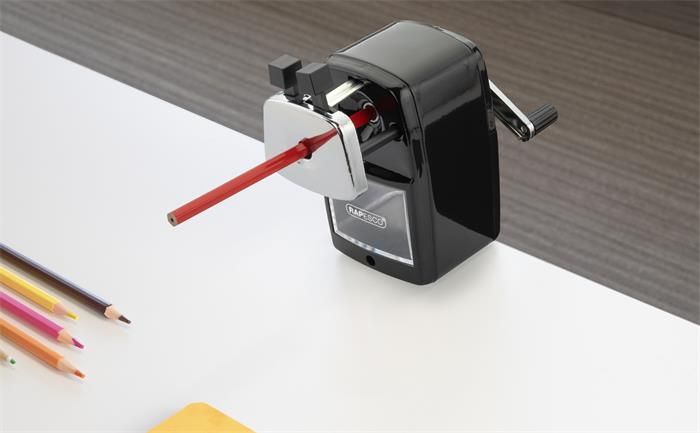Stolné strúhadlo na ceruzky Rapesco 74 je štýlové, vysoko funkčné strúhadlo s mnohými funkciami