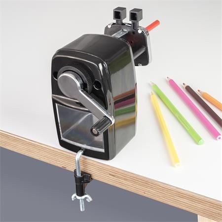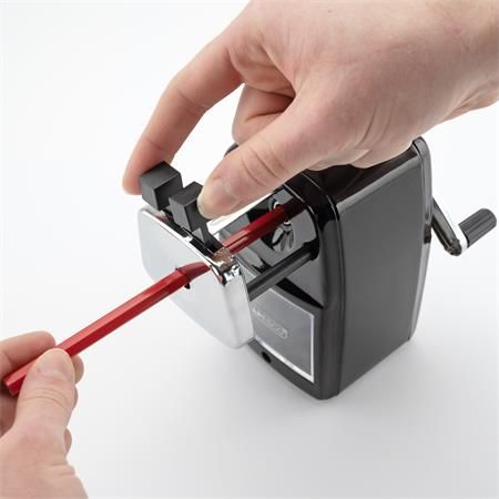 Jednoduché hliníkové strúhadlo, s odolnou a ostrou čepeľou z uhlíkovej ocele. Ideálne pre grafitové ceruzky a farebné ceruzky.