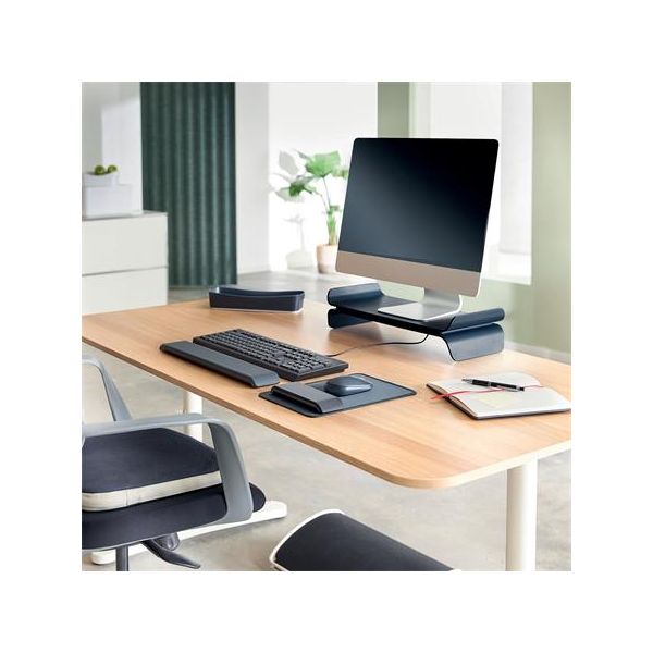 Dynamický podsedák Leitz Ergo Active je perfektný sedák zlepšujúci polohu pre pohodlnú a aktívnu prácu. Tento nafukovací podsedák sa hodí na každú stoličku a pomáha posilňovať chrbtové svaly vytváraním mikropohybov na udržanie rovnováhy pri sedení. IGR certifikovaný podsedák zlepšuje krvný obeh a zmierňuje tlak na chrbticu, aby sa znížilo nepohodlie spôsobené dlhodobým sedením a zdravotnými problémami, ako je ischias. Hranatý tvar a zvýšená sedacia plocha pre lepšiu ergonómiu a správne umiestnenie na stoličke. Tento štýlový, minimalisticky navrhnutý ortopedický podsedák vytvára aktívne pracovné prostredie a môže mať pozitívny vplyv na pohodu. V kombinácii s ďalšími produktmi Leitz Ergo poskytuje príjemný a flexibilný pracovný priestor, vďaka ktorému budete aktívny a produktívny počas celého dňa. Uhlový tvar a zvýšená plocha sedadla pre lepšiu ergonómiu a správne umiestnenie na stoličke, kompatibilná s akoukoľvek stoličkou – môže pomôcť znížiť nepohodlie, únavu a stuhnutosť, ktoré môžu byť spôsobené dlhodobým sedením a zdravotnými problémami, ako je ischias – zlepšuje krvný obeh a môže zmierniť tlak na chrbtici podporovaním mikropohybov na udržanie rovnováhy a minimalizovanie kontaktu medzi kostrčou a stoličkou - po umiestnení na stoličku dokáže uniesť až 150 kg - DIN 26800 od Nemeckého inštitútu zdravia a ergonómie IGR Produkt testovaný a odporúčaný podľa podľa normy EN ISO 15537 - ideálne pre domáce alebo kancelárske použitie - príslušenstvo s pumpičkou - balenie bez plastov