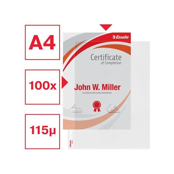 Podskupina: otvorené, dierovanéVeľkosť: A4Hrúbka: 115 mikr.Povrch: drsnýFarba: bez farbyVeľmi pevný závesný plastový obal pre každodenné použitie, ideálny pre dokumenty, do ktorých je potreba často…
