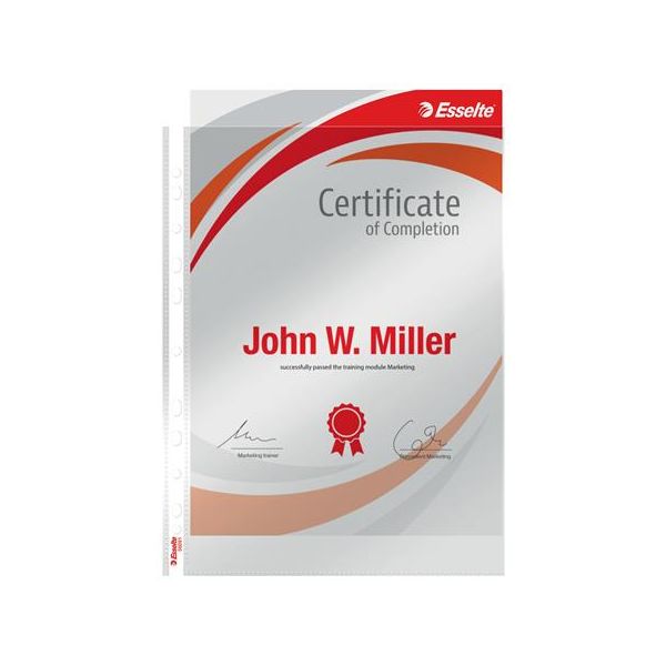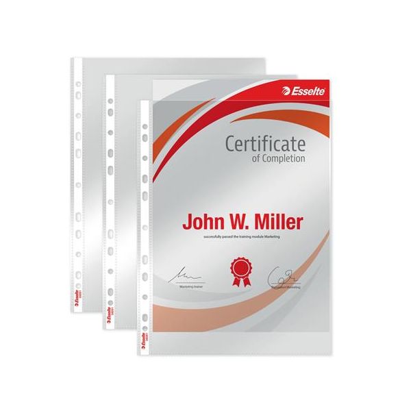 Priehľadný číry euroobal z polypropylénu. Otvor zhora, eurodierovanie, povrch lesklý a hladký. Formát A4.Balenie 10 ks v sáčku.