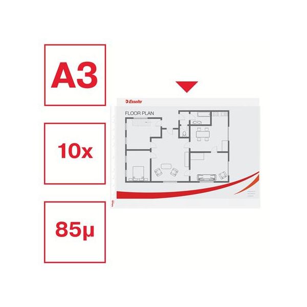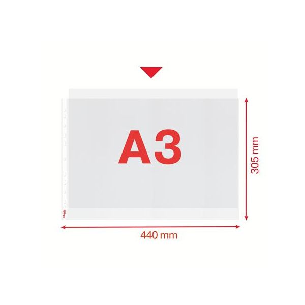 Podskupina: s eurodierovanímVeľkosť: A3Hrúbka: 85 mikr.Povrch: drsnýFarba: bez farbyKvalitné plastové závesné obaly pre časté a reprezentatívne použitie veľkoformátových dokumentov A3 v pákových a…