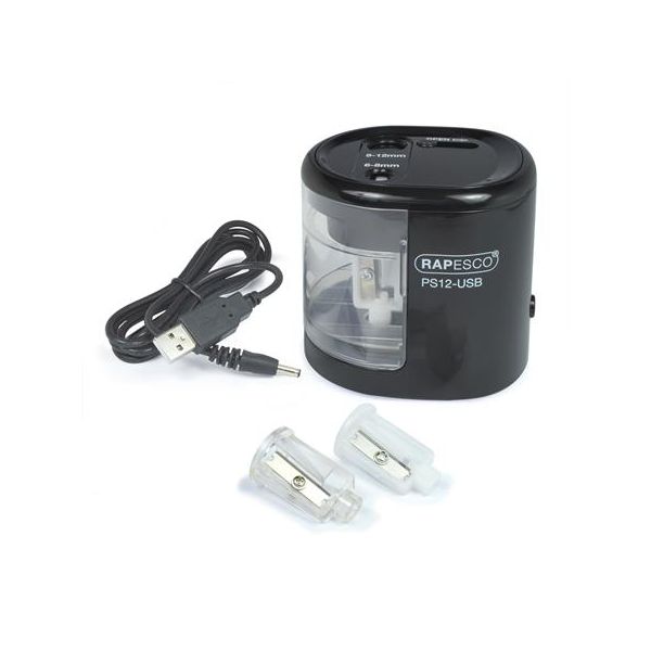 Strúhadlo, 2 otvory, stolové, elektrické, USB konektor, RAPESCO"PS12-USB", čierna