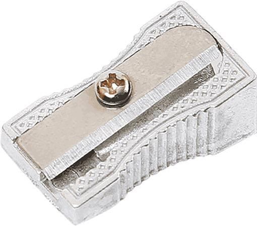 Jednoduché hliníkové strúhadlo, s odolnou a ostrou čepeľou z uhlíkovej ocele. Ideálne pre grafitové ceruzky a farebné ceruzky.