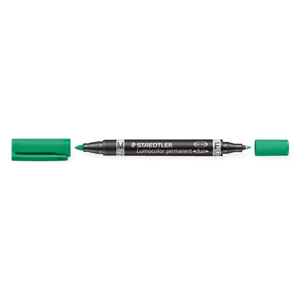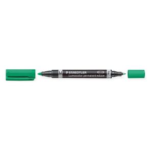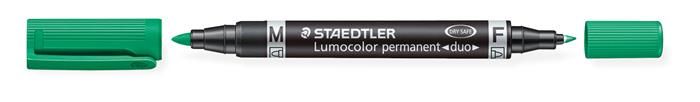 Permanentný popisovač, F/M, 0,6/1,5 mm, kužeľový hrot, s 2 hrotmi, STAEDTLER "Lumocolor Duo", zelený