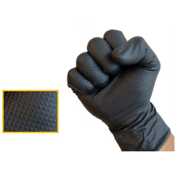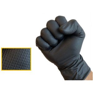 Jednorazové ochranné rukavice bez latexu, prémiová odolnosť. -nesterilné -nepudrované extra zdrsnená dlaň a prsty -s navinutým lemom --vhodné pre obe ruky -neobsahuje latex -materiál: nitril (8,4gr / 7.0 mil) AQL: 1,5 -dĺžka: 240 mm -farba: čierna -balenie: 100 ks/krabica, 10 krabíc/kartón -EU norma: 2016/425; EN ISO 374-1:2016 (JKPT); EN ISO 374-5:2016; EN 420: 2003+A1: 2009; 2017/745