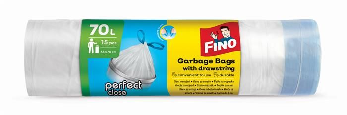 Vrecia na odpadky, zaťahovacie, 70 l, 15 ks, 64x70 cm, 14 µ, FINO "Perfect Close", biela