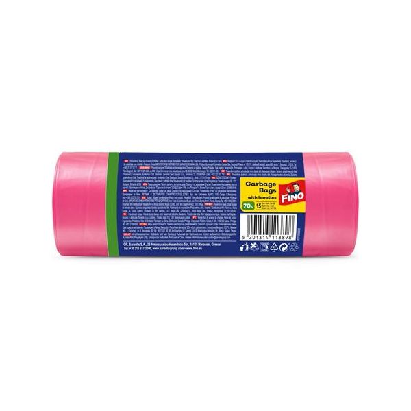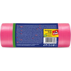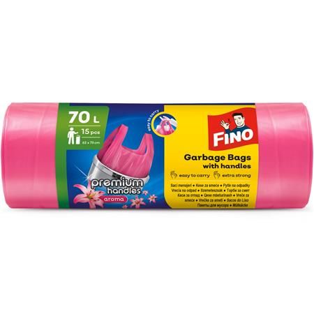 Vrecia na odpadky, s uškom, parfumované, 70 l, 15 ks, 62x73 cm, 16 µ, FINO "Premium handles", ružové