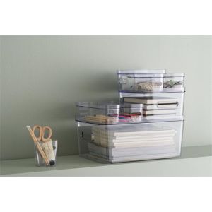 Úložný box, plastový, 1,5 l, čierne úchytky, SMARTSTORE "Classic 1,5", priehľadný
