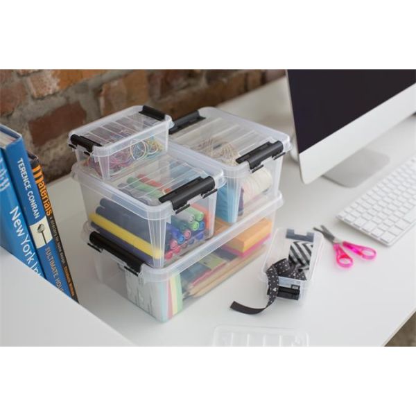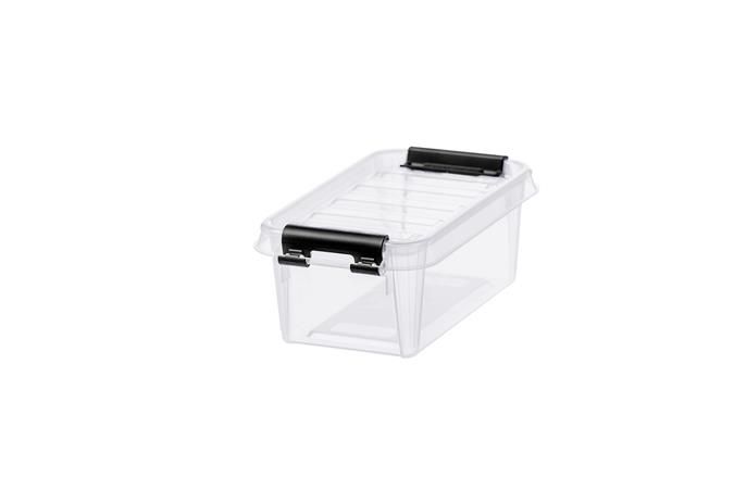 Úložný box, plastový, 0,3 l, čierne úchytky, SMARTSTORE "Classic 0,5", priehľadný