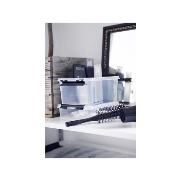 Úložný box, plastový, 1,5 l, čierne úchytky, SMARTSTORE "Classic 1,5", priehľadný