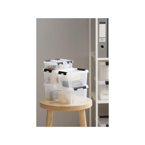Úložný box, plastový, 3,6 l, čierne úchytky, SMARTSTORE "Classic 5", priehľadný
