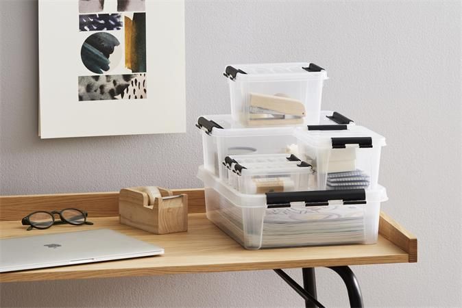 Úložný box, plastový, 8 l, čierne úchytky, SMARTSTORE "Classic 14", priehľadný
