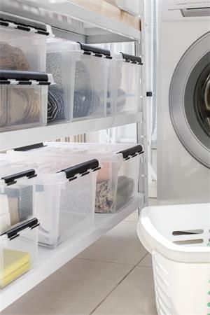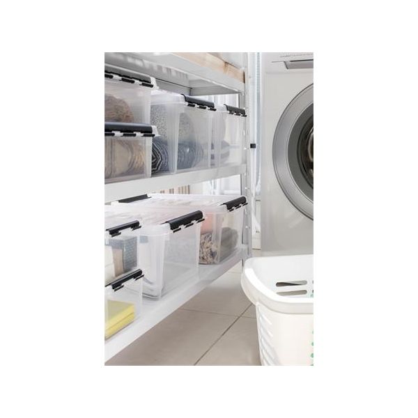 Úložný box, plastový, 14 l, čierne úchytky, SMARTSTORE "Classic 15", priehľadný