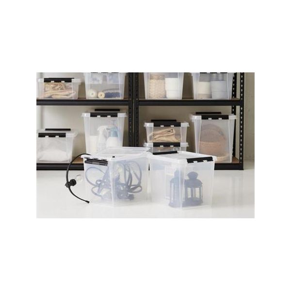 Úložný box, plastový, 61 litrov, čierne úchytky, SMARTSTORE "Classic 65", priehľadná