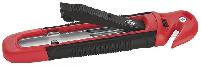 Univerzálny odlamovací nôž, 18 mm, s rezačkou na fóliu, WEDO "Safety", červená/čierna