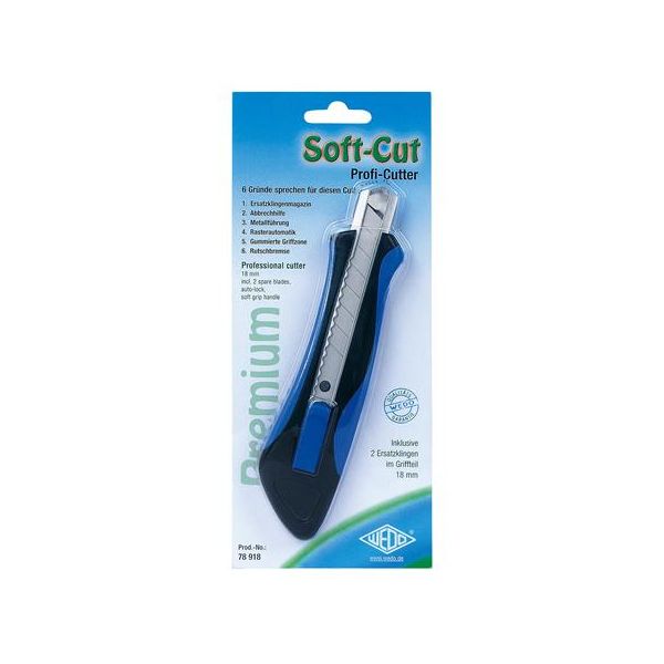 Univerzálny odlamovací nôž, 18 mm, WEDO "Soft-cut", modrá/čierna