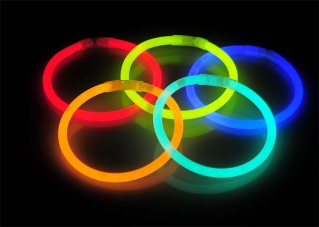 Náramok, svietiaci v tme, plastový, 15 ks, rôzne farby