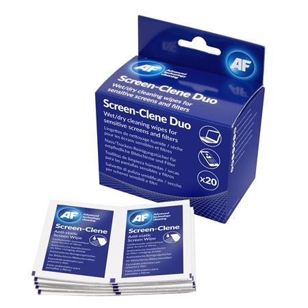 recyklovateľné, balenia obsahujú vlhké a suché utierky, použiteľné na čistenie monitorov, filtrov, skiel s povlakom, LCD a plazma obrazoviek, zrkadiel, optík, spätných projektorov, čítačiek mikrofilmov, nezanecháva stopy, vyrobené s nižším obsahom chemikálií, z nehorľavého materiálu, bez alkoholu, balenie: 20 + 20 ks/bal