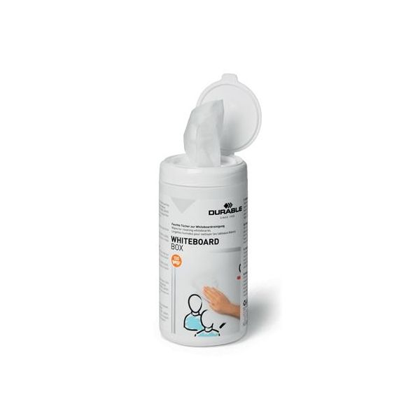 Čistiace utierky na tabule, 100 ks, DURABLE "WHITEBOARD BOX 100"