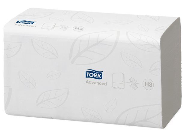 Papierové utierky, Z ohyb, 2-vrstvové, H3 systém, Advanced, TORK "Singlefold", biela