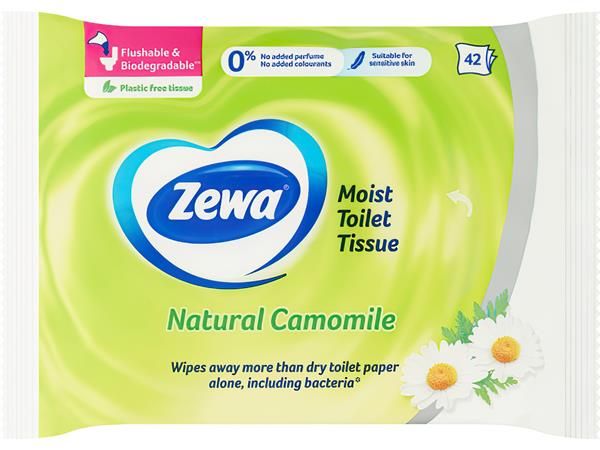 Zewa vlhčený toaletný papier, s kamilkou. Čistota pre celú rodinu.