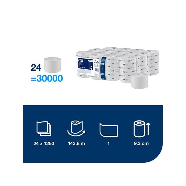 Toaletný papier, bezdutinkový, T7 systém, 1-vrstvový, priemer 13,1 cm, Universal, TORK "OptiServe", biela