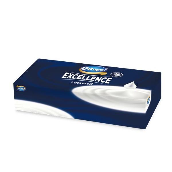 Papierové vreckovky, v krabici, 4-vrstvové, 80 ks, "Ooops! Excellence Lotioned"