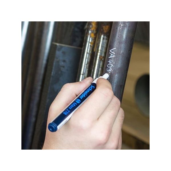 Olejový popisovač s okrúhlym písacím hrotom v hliníkovom tele. Atrament na alkoholovej a esterovej báze, po zaschnutí pripomínajúci olejovú farbu. vodeodolný, odolný voči oderu šírka stopy: 2-5 mm dĺžka čiary: 450 m možno použiť na kov, sklo, plast, drevo, kameň V súlade s normou EN71-3. Neobsahuje xylén. Pred použitím potriasť a stlačiť hrot.