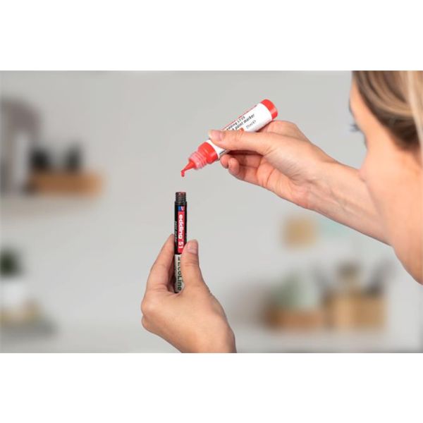 Profesionálna kvalita lakového popisovača na veľmi krycie a trvácne značenie a označovanie na tmavých, priehľadných a hladkých materiáloch, ako sú sklo, kov a plast.