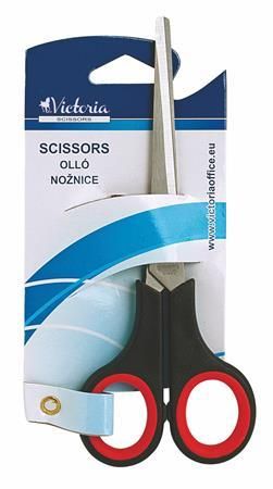 Nožnice s asymetrickými rukoväťami z PVC, dĺžka nožníc 165 mm, dodávané na blistri. Rozmer: 160x55mm, 75mm čepeľ.