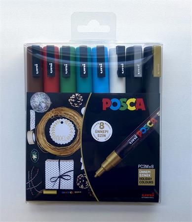 Dekoračný popisovač, sada, 0,9-1,3 mm, UNI "Posca PC-3M Holiday", 8 rôznych farieb