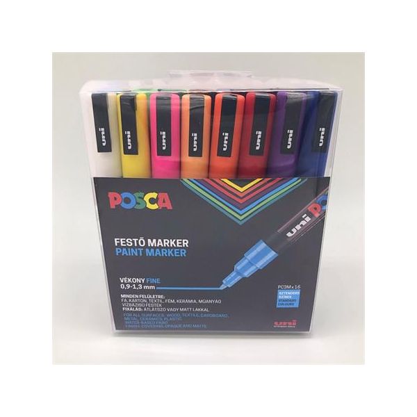 Dekoračný popisovač, sada, 0,9-1,3 mm, UNI "Posca PC-3M", 16 rôznych farieb