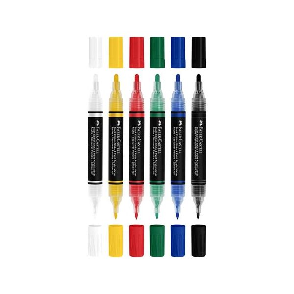Dekoračný popisovač, sada, 1,0/3,0 mm, obojstranný, akrylový, FABER-CASTELL "Shake&Paint", 6 rôznych farieb
