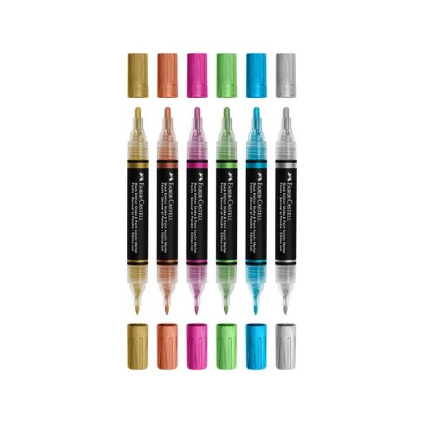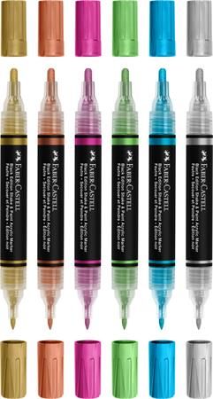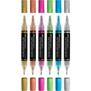 Dekoračný popisovač, sada, 1,0/3,0 mm, obojstranný, akrylový, FABER-CASTELL "Shake&Paint", 6 rôznych kovových farieb