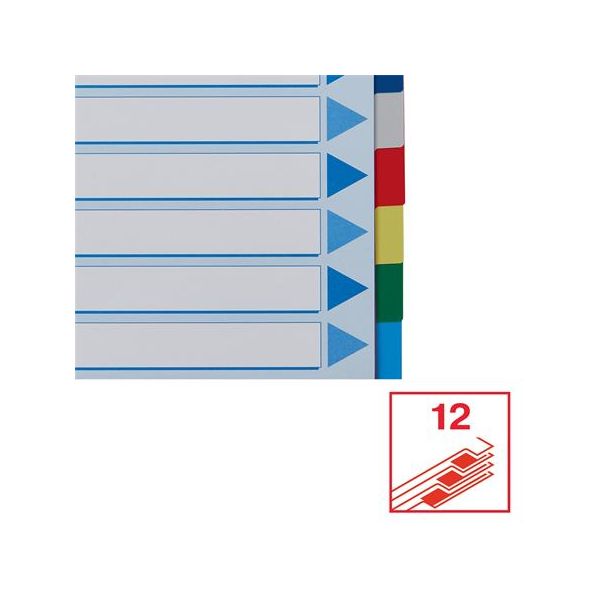 z ekologického 170 g/m2 papiera formát: A4 12 dielny s eurodierovaním 12 rôznofarených ušiek pre jednoduché triedenie materiel s certifikátom Blue Angel