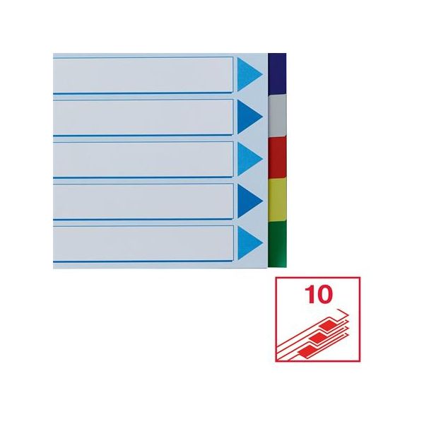 z ekologického 170 g/m2 papiera formát: A4 10 dielny s eurodierovaním 10 rôznofarených ušiek pre jednoduché triedenie materiel s certifikátom Blue Angel