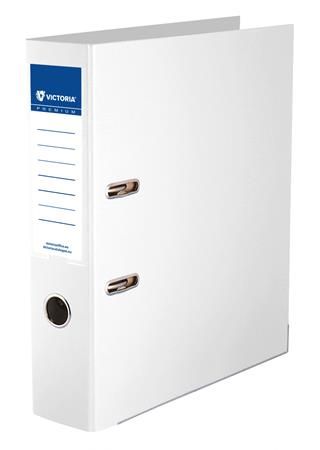 Pákový šanón, 75 mm, A4, PP/PP, s ochranným spodným kovaním, VICTORIA OFFICE „Premium“, biely